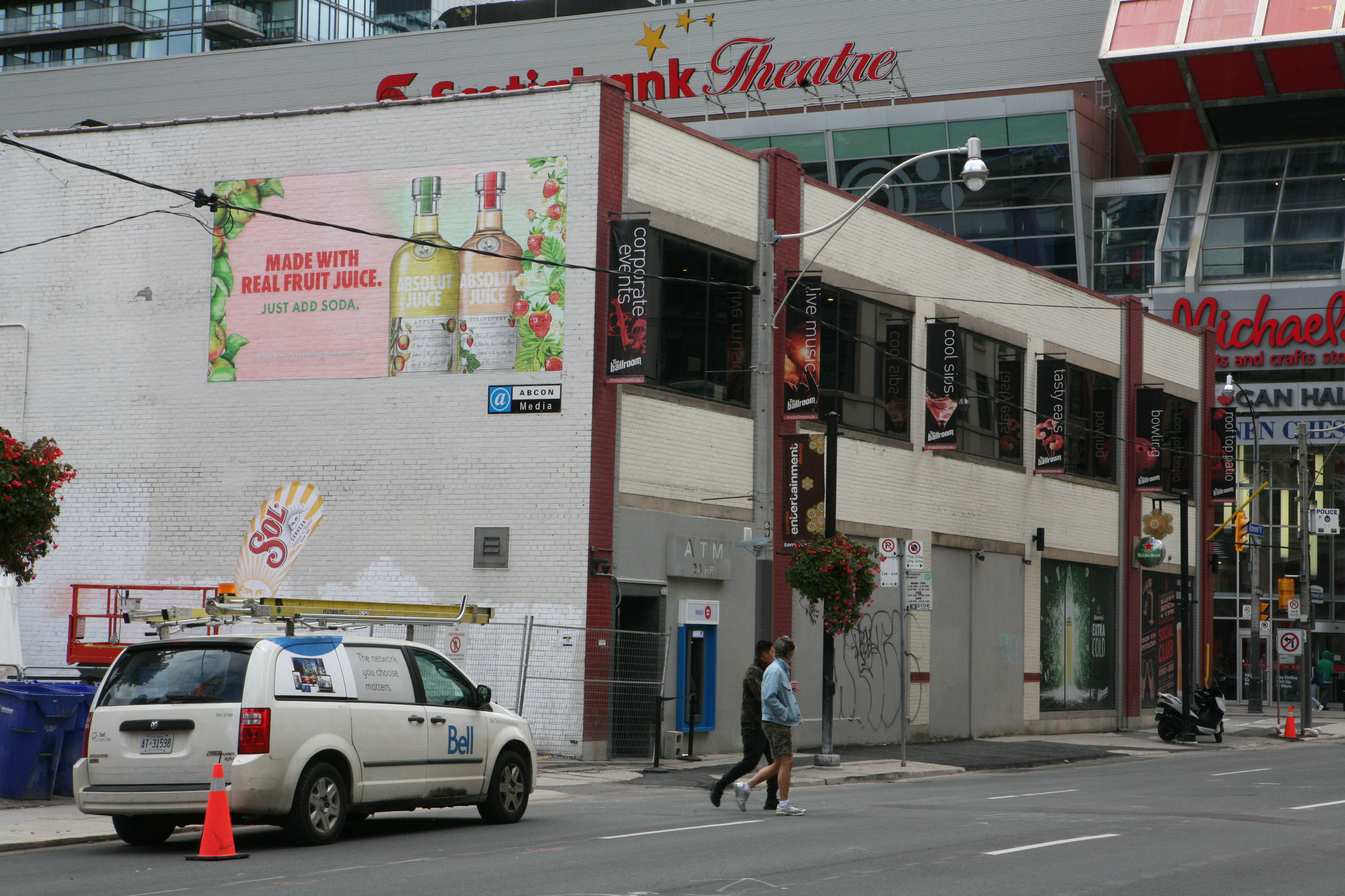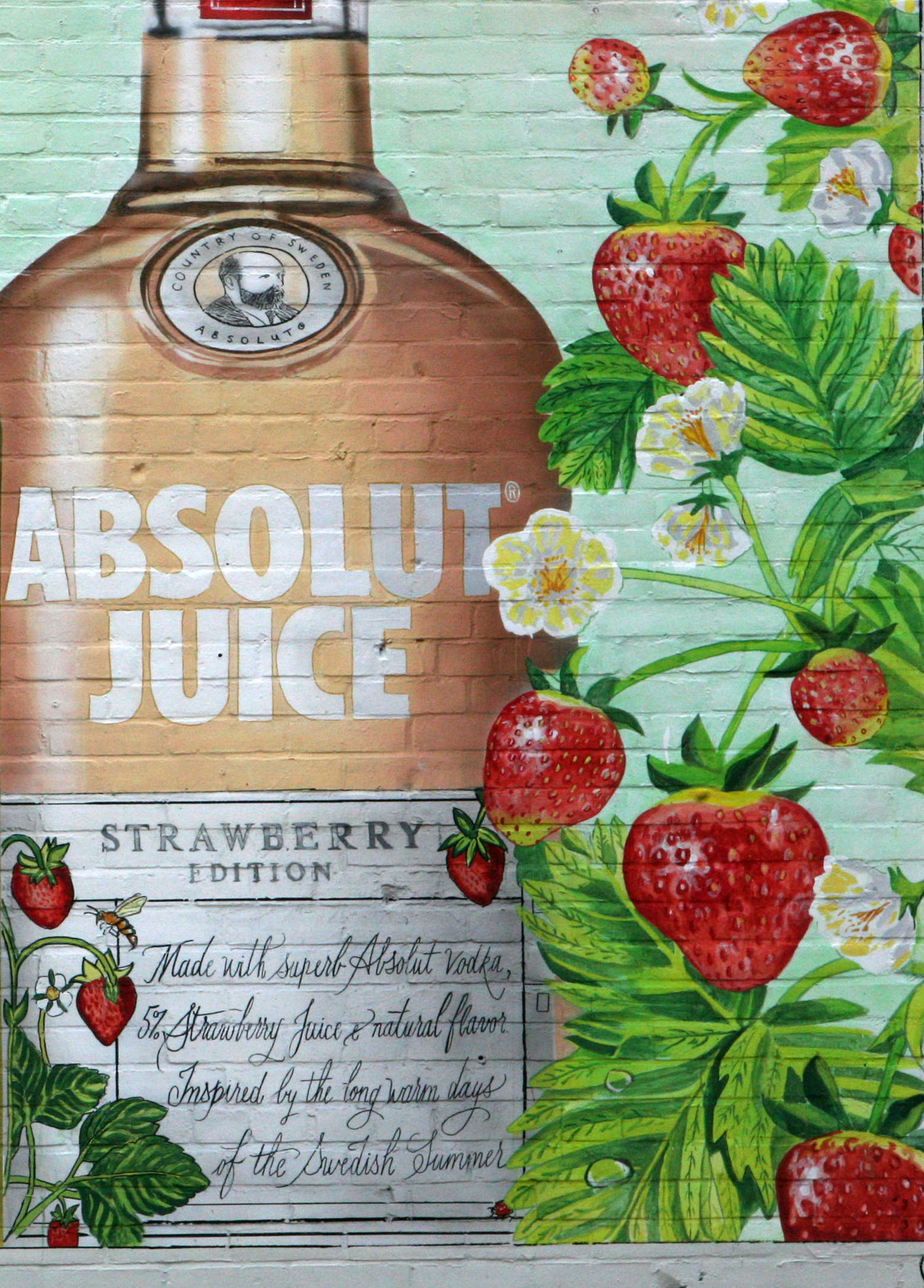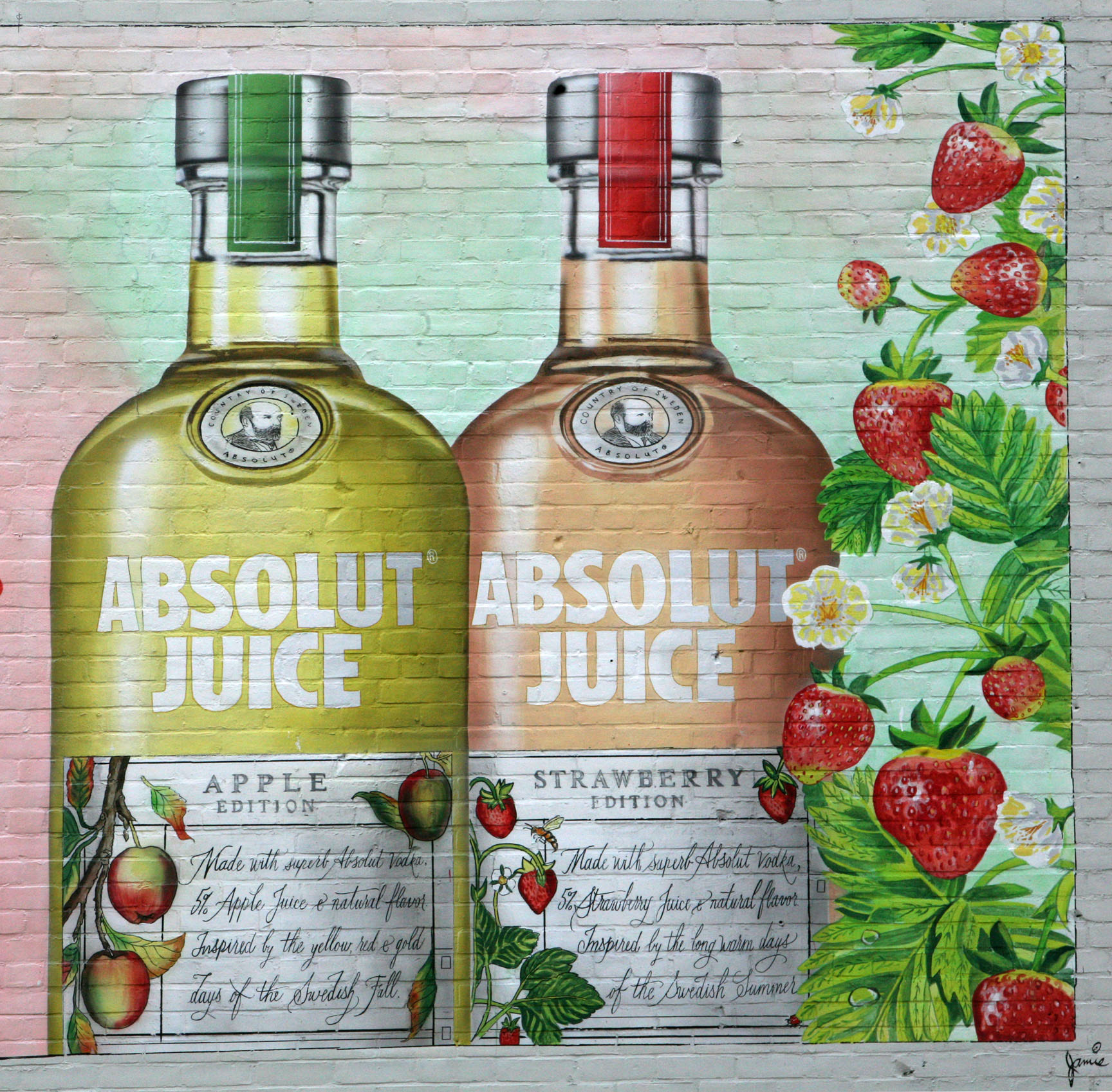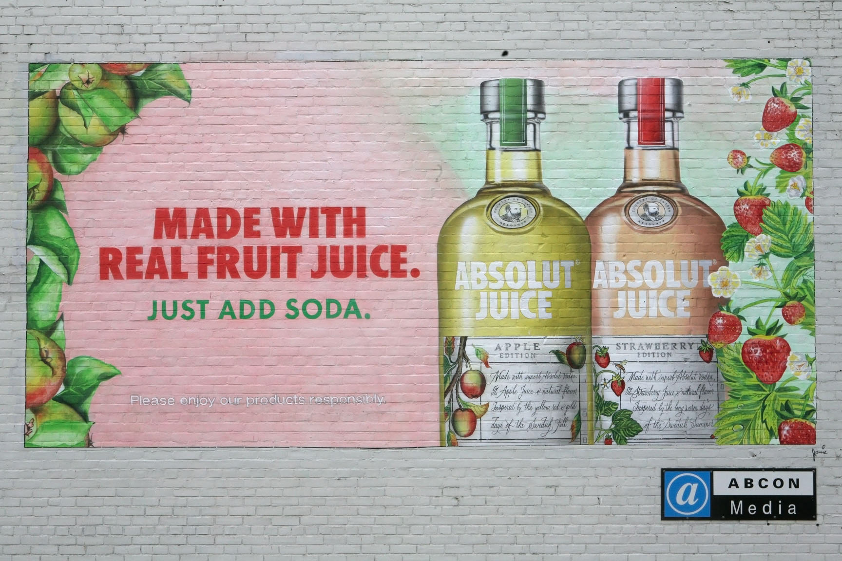 An Absolut Juice MuralAd at 145 John Street Toronto. We painted many images at this ABCON Media billboard site between (2016-2020)