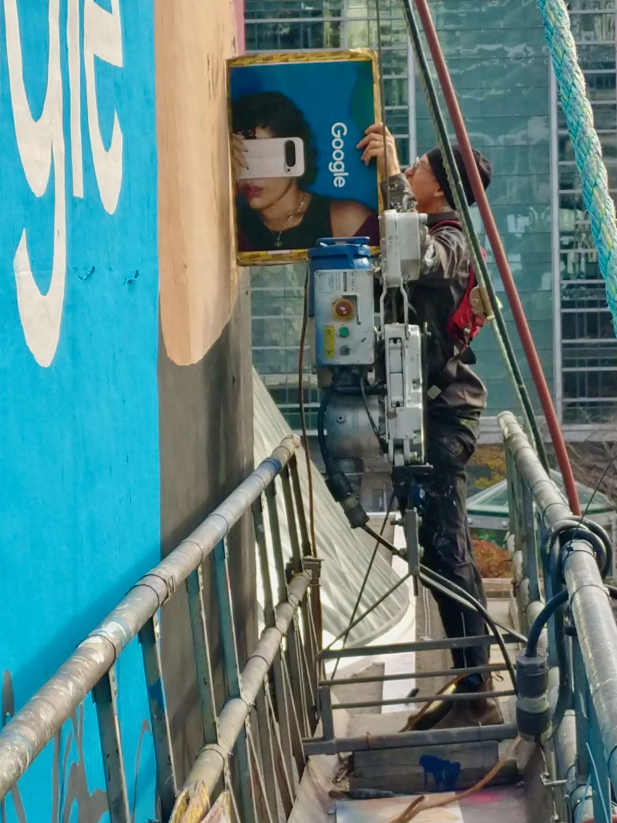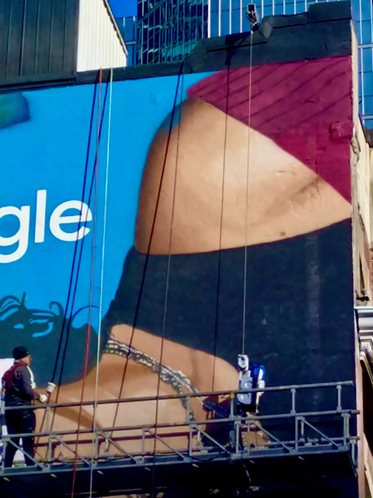 Painted Mural Ad (10 m. x 13m.) on the west facing wall at 220 King St. W. Toronto.