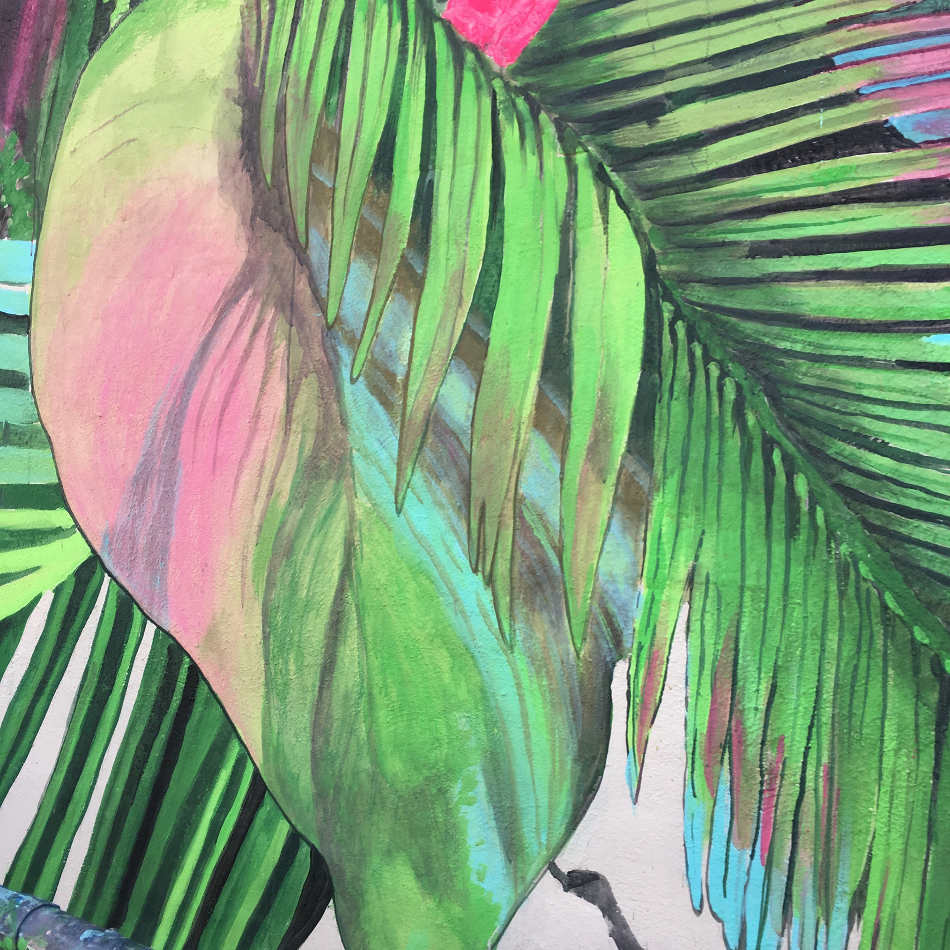 This mural advertisement located at 253 Queen St. W. Toronto was painted using UV Florescent paint. The image was illuminated with LED blacklight ultraviolet lamps.
